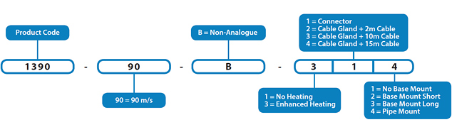 All Gill WindObserver wind sensors follow the same part number convention, which is driven by the selected product options. Use the chart below to build your part number.